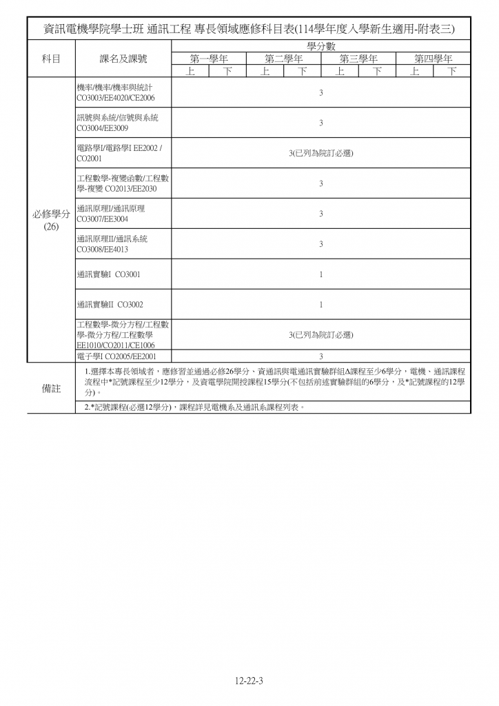 修習基礎必修課程三十學分,與必選星號課程十二學分後,可參閱通訊系與電機系網頁課程地圖,再進一步選修各組專項領域所規劃課程修習。
