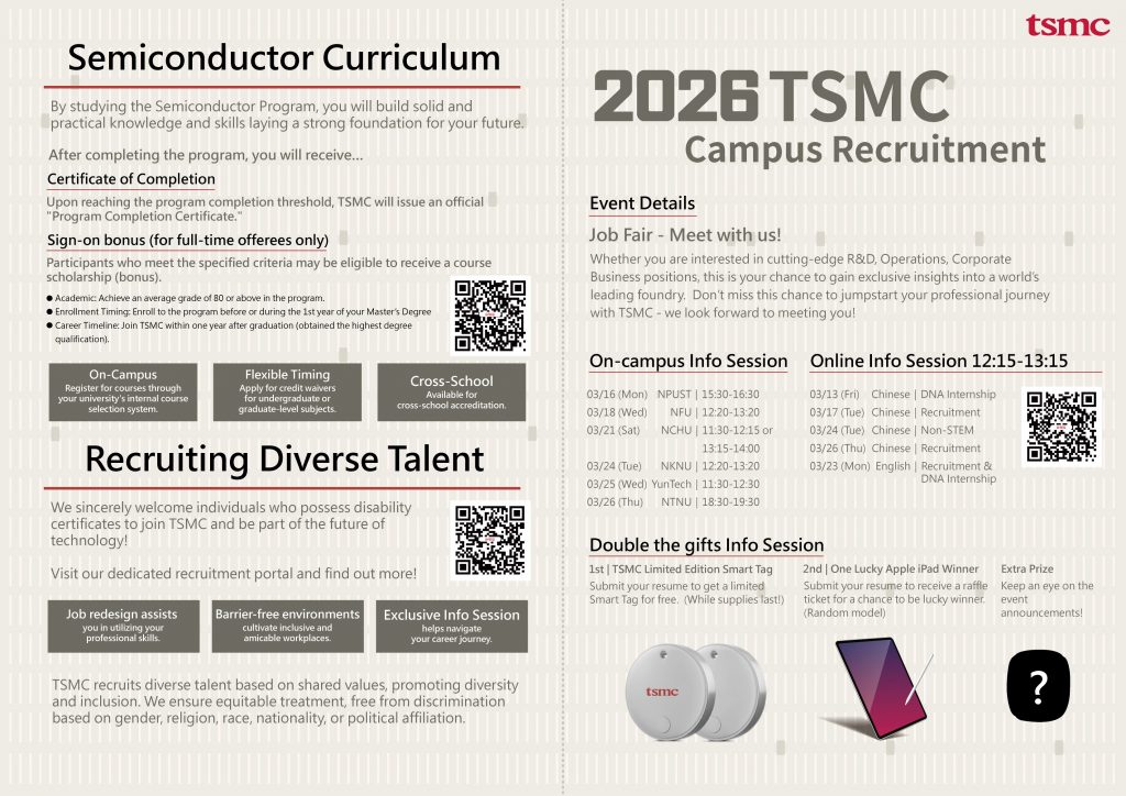 2026台積電校園徵才暨暑期實習計畫 TSMC Campus Recruitment & Summer Internship